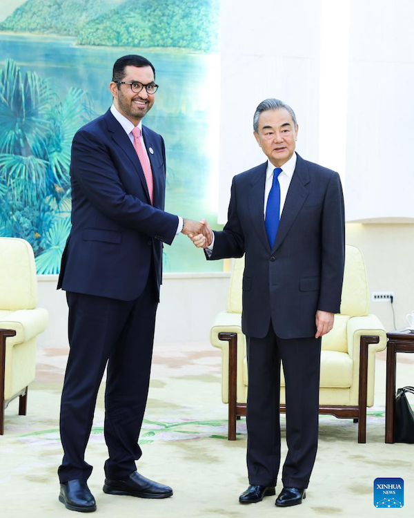 Wang Yi, membro do Bir? Político do Comitê Central do Partido Comunista da China (PCCh), reuniu-se na ter?a-feira em Beijing com o presidente designado da COP28 dos Emirados árabes Unidos (EAU), Sultan Al Jaber.