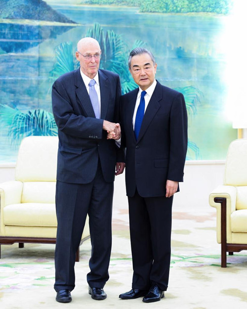 Wang Yi, membro do Bir? Político do Comitê Central do Partido Comunista da China (PCCh) e diretor do Escritório da Comiss?o de Rela??es Exteriores do Comitê Central do PCCh, reuniu-se com uma delega??o liderada por Paulson no mesmo dia.