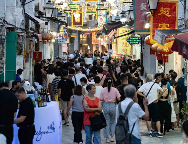 Durante este feriado, a área ao redor da Rua da Felicidade, uma rua centenária no centro da Península de Macau, foi transformada em uma zona de pedestres com instala??es de arte, mercados, jogos e espectáculos, dando aos residentes locais e turistas a chance de vivenciar a história de Macau.
