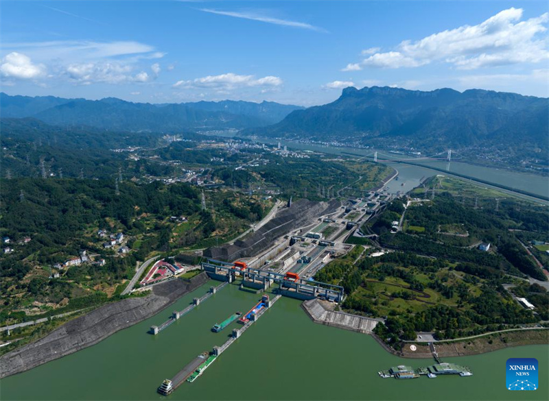 A eclusa da barragem faz parte do projeto das Três Gargantas - um sistema multifuncional de controle de água localizado no rio Yangtze, o maior curso de água do país.