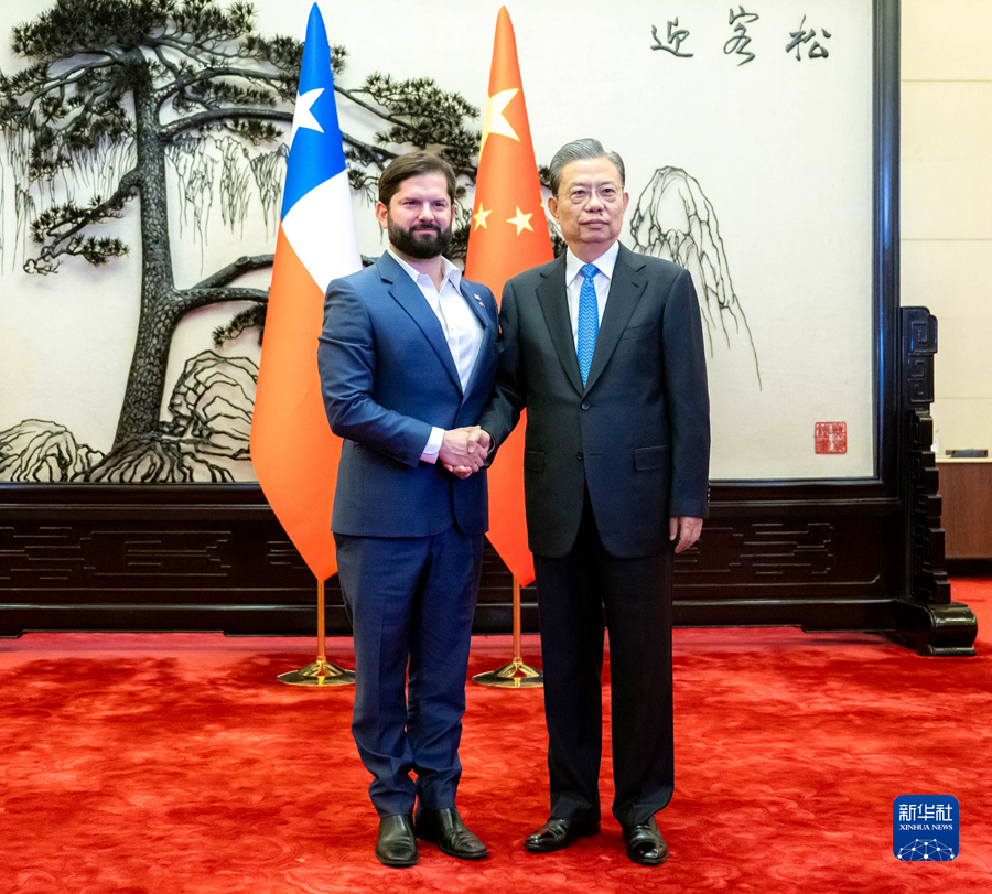 O mais alto legislador da China, Zhao Leji, reuniu-se nesta segunda-feira em Beijing com o presidente do Chile, Gabriel Boric.