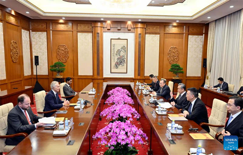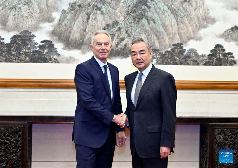 Wang Yi, diretor do Escritório da Comiss?o de Rela??es Exteriores do Comitê Central do Partido Comunista da China (PCCh), reuniu-se com o ex-primeiro-ministro britanico Tony Blair em Beijing na segunda-feira.
