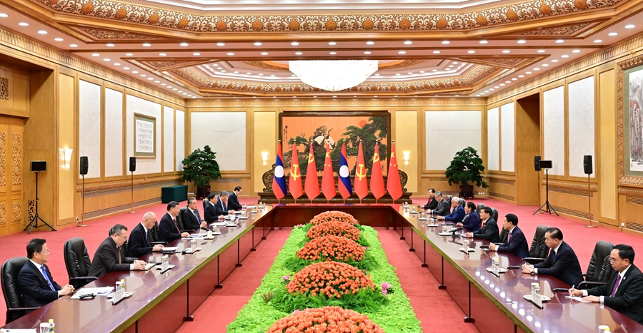 Xi Jinping, secretário-geral do Comitê Central do Partido Comunista da China (PCCh) e presidente chinês, reuniu-se com Thongloun Sisoulith, secretário-geral do Comitê Central do Partido Revolucionário Popular do Laos (LPRP) e presidente laociano, em Beijing, nesta sexta-feira.