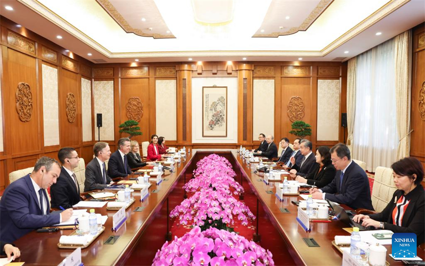 Wang Yi, diretor do Escritório da Comiss?o Central de Rela??es Exteriores, reuniu-se com Gavin Newsom, governador do estado norte-americano da Califórnia, em Beijing, na quarta-feira.