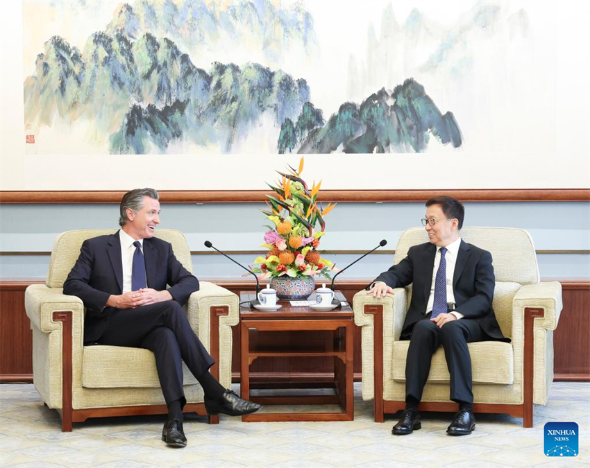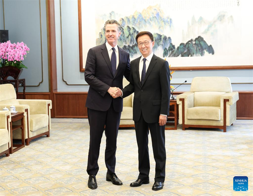 O vice-presidente chinês, Han Zheng, reuniu-se com Gavin Newsom, governador do estado norte-americano da Califórnia, em Beijing, na quarta-feira.