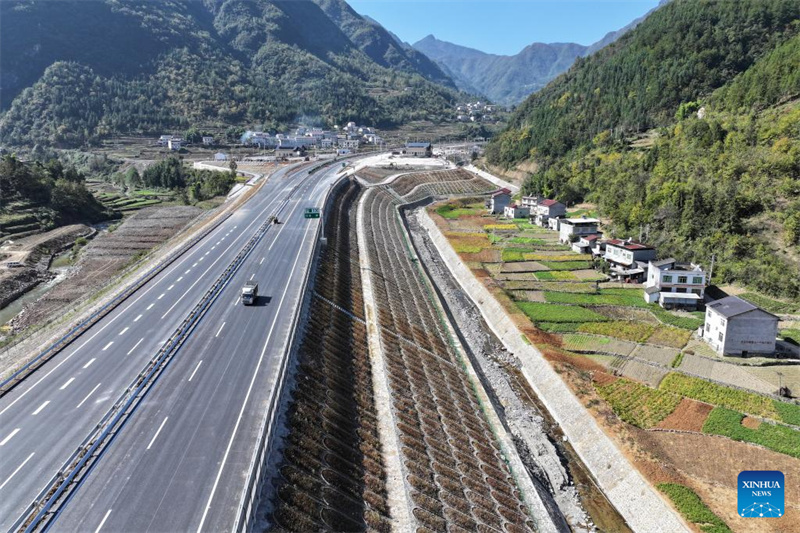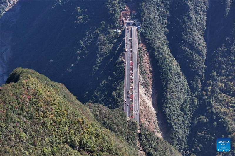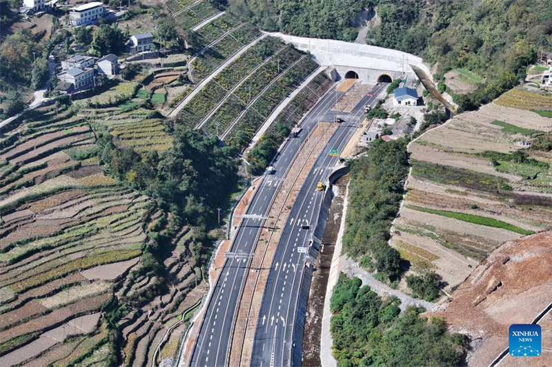Canteiro de obras da via expressa Wuxi-Zhenping, na província de Shaanxi, no noroeste da China. Conectando o condado de Zhenping, na província de Shaanxi, ao condado de Wuxi, no município de Chongqing, a via expressa Wuxi-Zhenping, de 48,7 quil?metros, deverá abrir oficialmente à circula??o antes do dia de Ano Novo Chinês , em 2024. (Xinhua/Shao Rui)