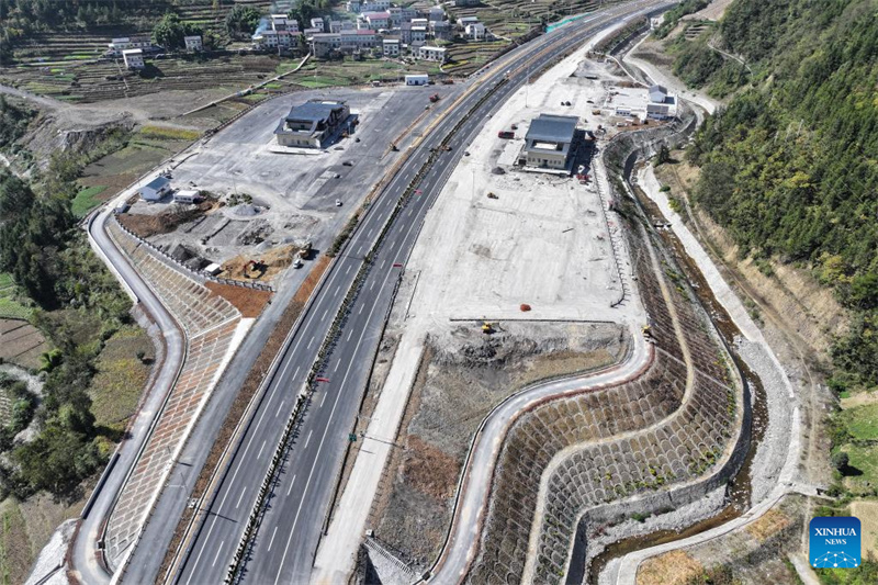 Canteiro de obras de uma área de servi?o ao longo da via expressa Wuxi-Zhenping, na província de Shaanxi, noroeste da China. (Xinhua/Shao Rui)