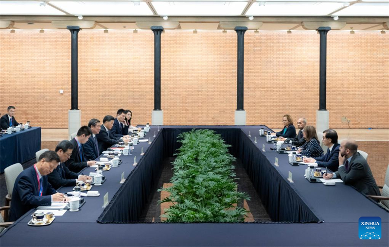O vice-primeiro-ministro chinês, He Lifeng, se reuniu respectivamente com Rebeca Grynspan, secretária-geral da Conferência das Na??es Unidas sobre Comércio e Desenvolvimento (UNCTAD), e com o ex-embaixador dos EUA na China, Max Baucus, em Shanghai no último sábado.