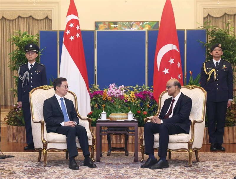 Em uma reuni?o separada com o presidente de Cingapura, Tharman Shanmugaratnam, Han exaltou que China e Cingapura s?o importantes parceiras de coopera??o e sua coopera??o tem mostrado forte resiliência e vitalidade, o que ele acredita que produzirá mais e melhores resultados no futuro.