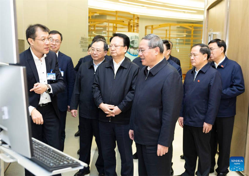 Durante sua inspe??o na Província de Jilin, Li visitou uma empresa farmacêutica e uma firma de satélite. Ele incentivou as empresas a continuarem a aumentar o investimento em pesquisa e desenvolvimento, fortalecerem a constru??o de equipes de talentos e se desenvolverem por meio de beneficiar as pessoas e atender à demanda do mercado.