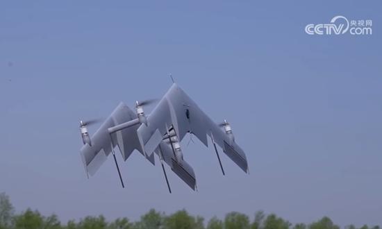 Captura de tela dos veículos aéreos n?o tripulados de decolagem e aterrissagem verticais de duas asas da CCTV