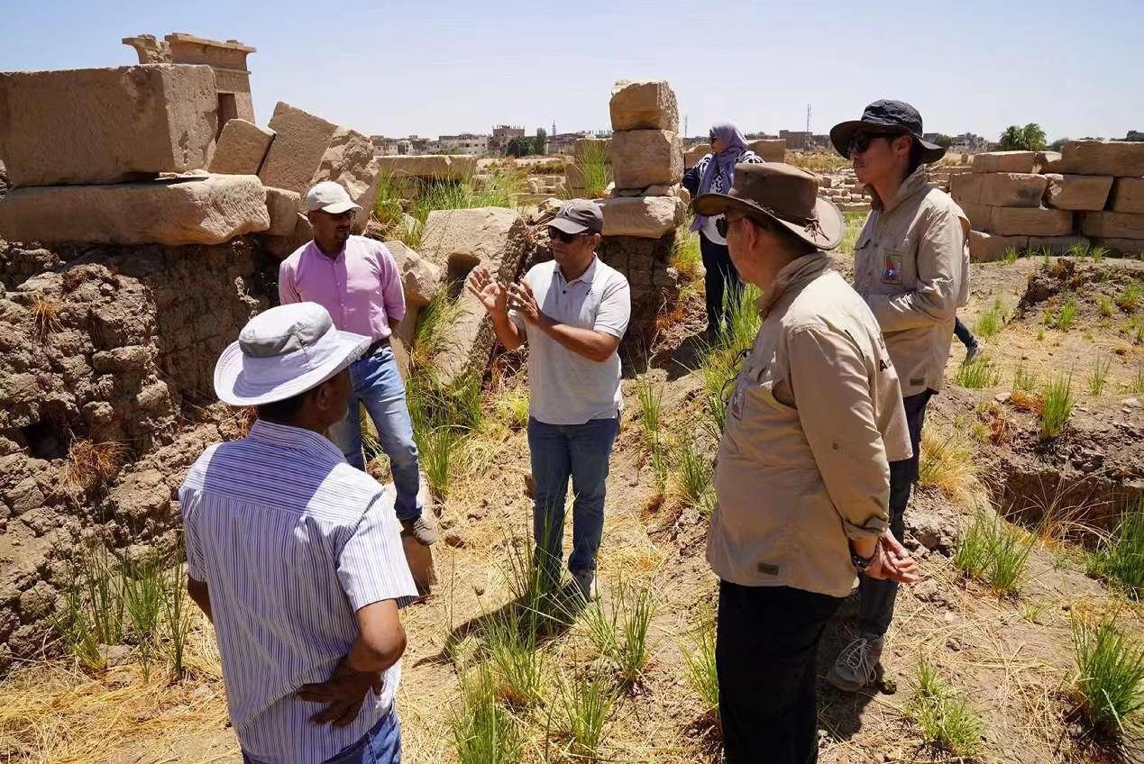 Membros de uma miss?o arqueológica conjunta sino-egípcia trabalham no Templo Montu em Luxor, Egito. (Foto: Gao Wei/Diário do Povo Online)