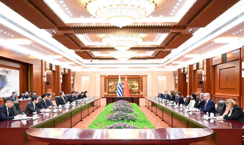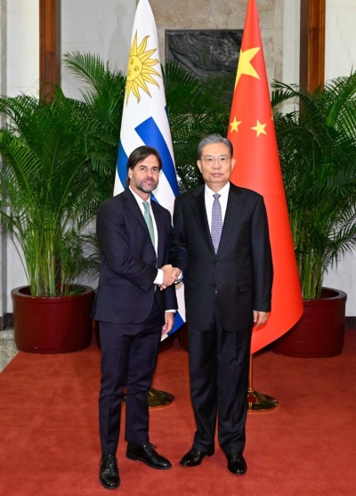 O presidente do Comitê Permanente da Assembleia Popular Nacional (APN) da China, Zhao Leji, reuniu-se com o presidente uruguaio, Luis Alberto Lacalle Pou, na quinta-feira em Beijing, pedindo um maior intercambio entre os órg?os legislativos dos dois países.