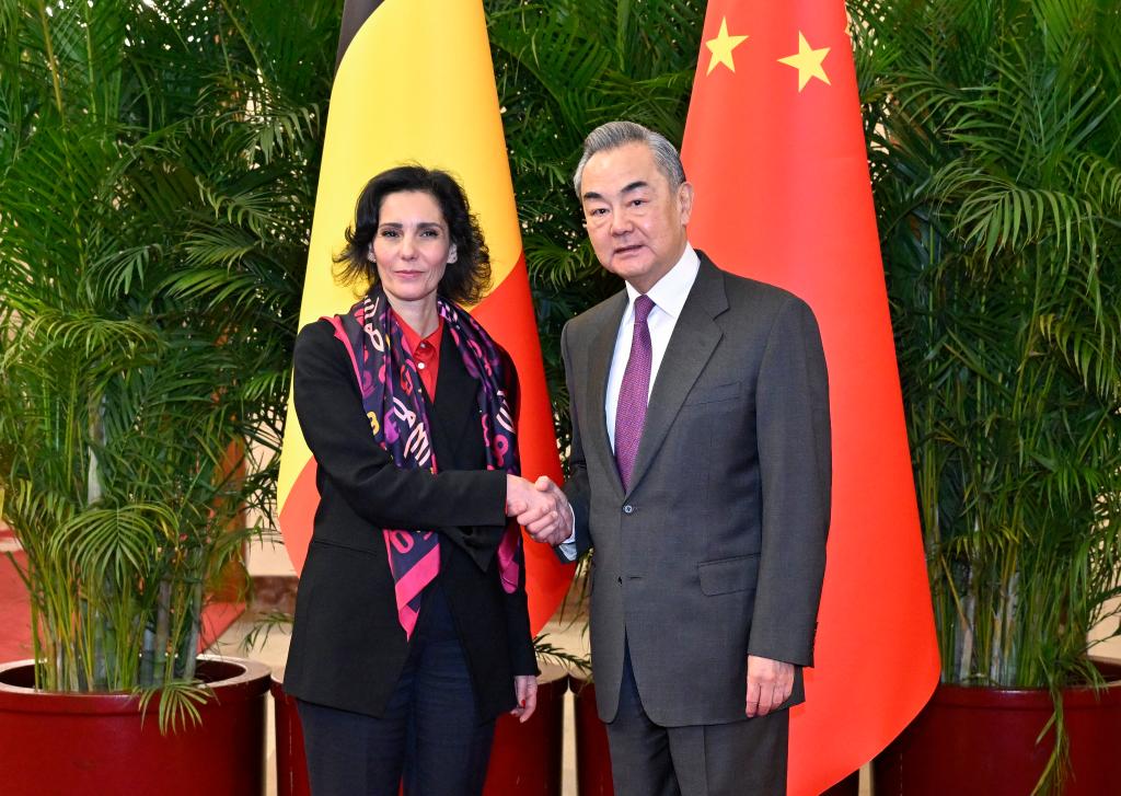 O ministro chinês das Rela??es Exteriores, Wang Yi, reuniu-se com a ministra belga das Rela??es Exteriores, Hadja Lahbib, no mesmo dia.