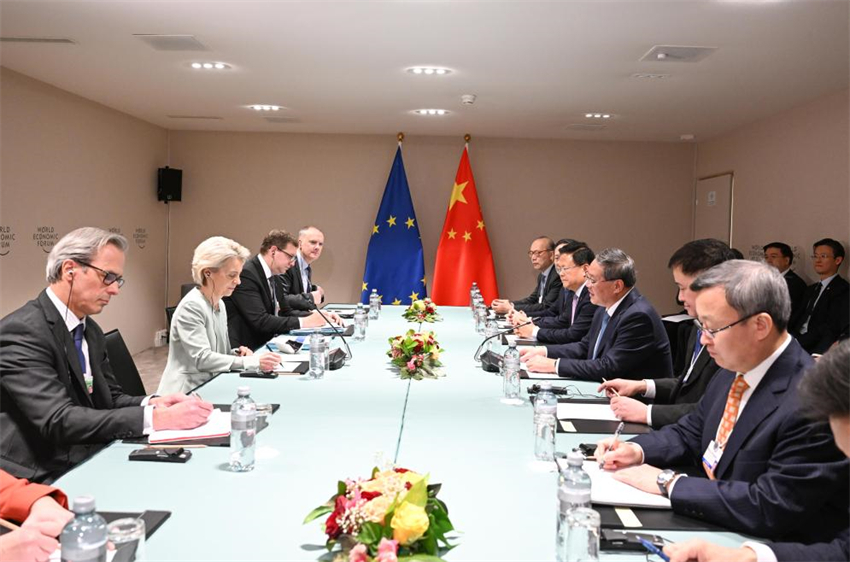 No mundo de hoje, repleto de mudan?as e turbulências, os la?os China-UE permanecem estáveis no que tange às rela??es entre os principais países, o que é resultado de esfor?os conjuntos de ambos os lados, disse Li ao se reunir com a presidente da Comiss?o Europeia, Ursula von der Leyen, à margem da Reuni?o Anual 2024 do Fórum Econ?mico Mundial.