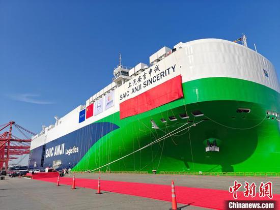Construída para a SAIC Anji Logistics, a embarca??o, batizada de “SAIC Anji Sincerity”, tem 200 metros de comprimento, 38 metros de largura e 13 andares de altura, com capacidade de deslocamento de 40 mil toneladas e capacidade para transportar 7,6 mil automóveis de passageiros.