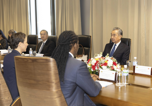 Wang enfatizou que a China adere ao caminho do desenvolvimento pacífico, pratica o multilateralismo genuíno e promove a solu??o política de quest?es de pontos críticos, se tornando um país importante com o melhor histórico de paz e seguran?a.