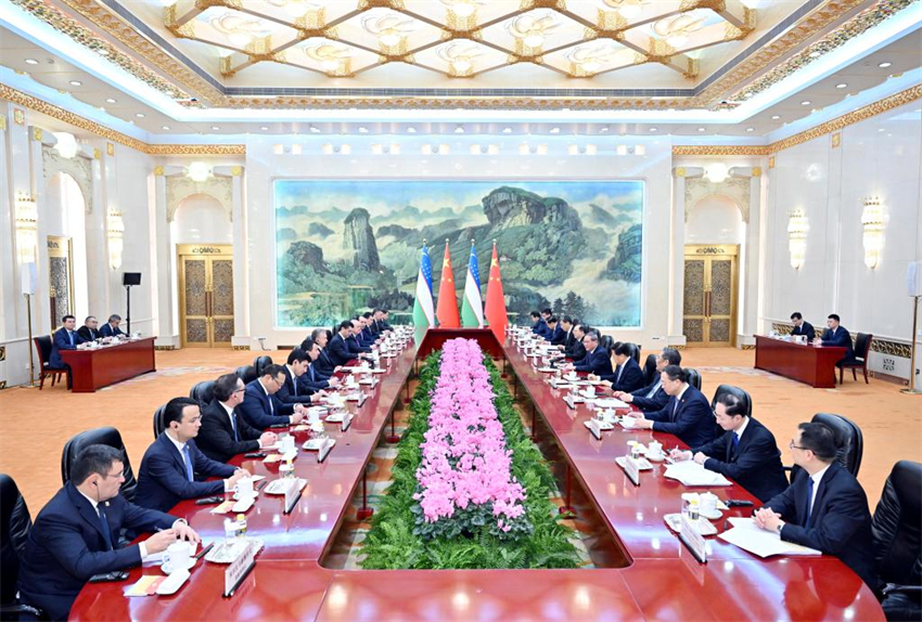 O primeiro-ministro chinês, Li Qiang, se reuniu na quarta-feira em Beijing com o presidente em visita da República do Uzbequist?o, Shavkat Mirziyoyev.