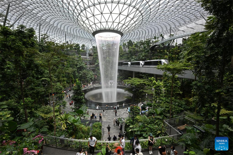 Turistas visitam o Aeroporto Jewel Changi, em Singapura, em 7 de setembro de 2023. (Foto de Then Chih Wey/Xinhua)