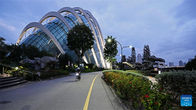 Parque ao longo da Marina Bay, em Singapura. (Foto de Then Chih Wey/Xinhua)