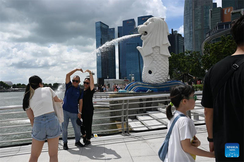 Turistas visitam o Parque Merlion, em Singapura em 21 de dezembro de 2023. (Foto de Then Chih Wey/Xinhua)