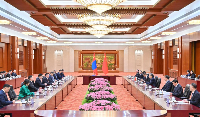 O mais alto legislador da China, Zhao Leji, reuniu-se em Beijing na quinta-feira com Lkhagva Munkhbaatar, vice-presidente do Grande Hural (Parlamento) da Mongólia.