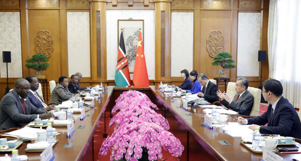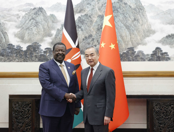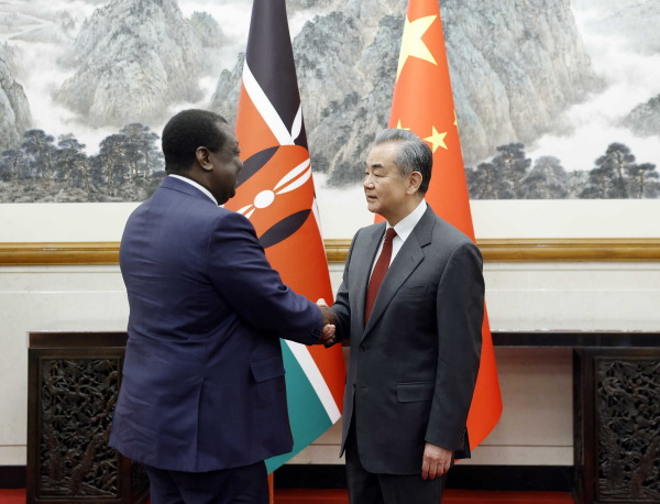 O ministro das Rela??es Exteriores chinês, Wang Yi, conversou na quinta-feira em Beijing com o primeiro secretário do Gabinete e secretário do Gabinete para Assuntos Estrangeiros e da Diáspora do Quênia, Musalia Mudavadi.