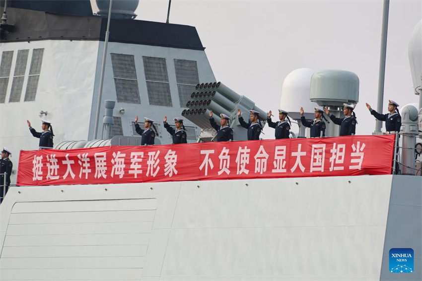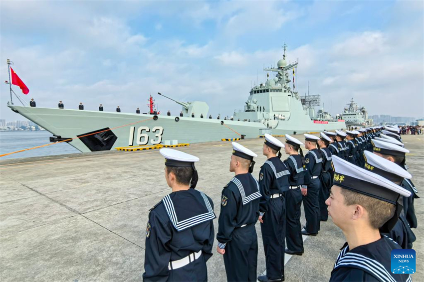 A 46a frota da Marinha do Exército de Liberta??o do Povo Chinês zarpa de um porto militar em Zhanjiang, província de Guangdong, no sul da China, em 21 de fevereiro de 2024. (Foto de Yang Jie/Xinhua)