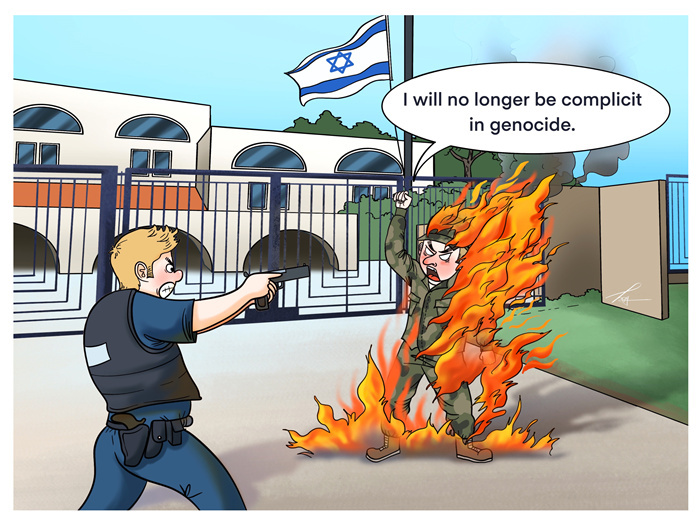 O homem protestou dessa forma extrema e transmitiu ao vivo o processo de autoimola??o nas redes sociais. “N?o quero ser cúmplice do genocídio”, disse ele. Ele morreu depois que a reanima??o falhou e tinha apenas 25 anos. O ocorrido foi um “incidente trágico”, segundo um porta-voz do Departamento de Defesa dos EUA.