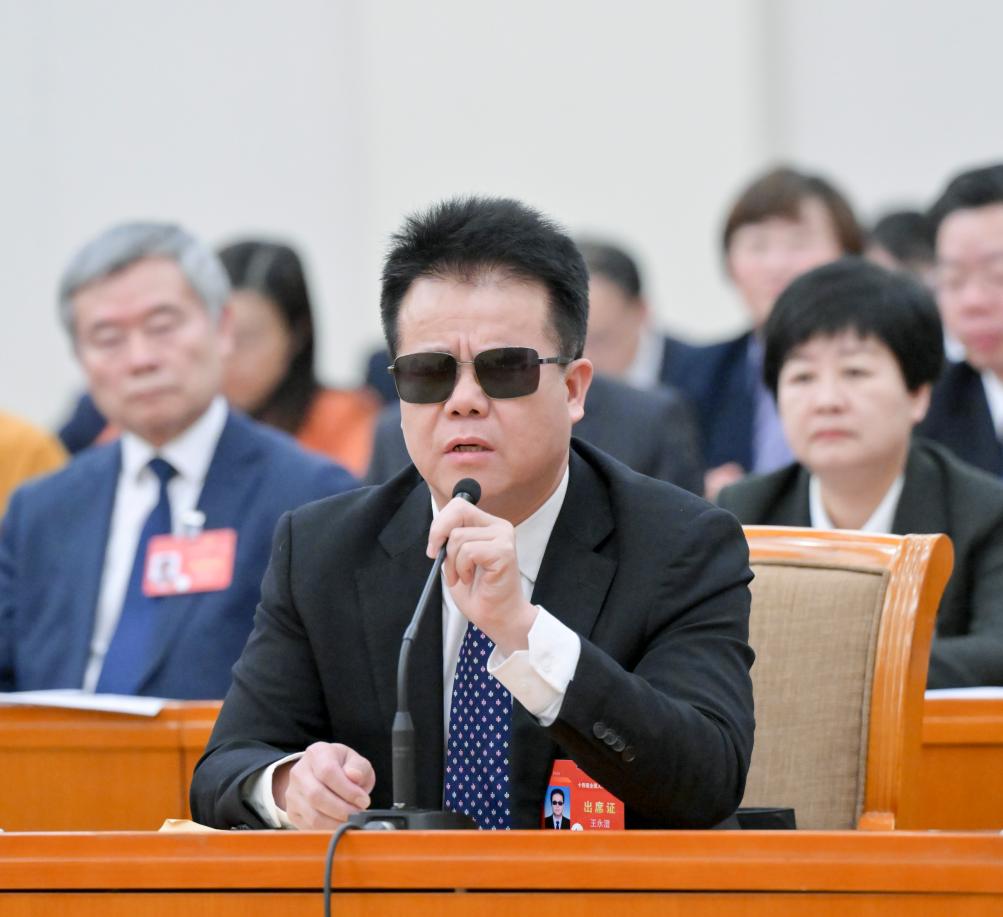 Entre os quase 3.000 deputados da 14a APN que iniciaram o seu mandato de cinco anos em 2023, Wang destaca-se como o único indivíduo com deficiência visual.