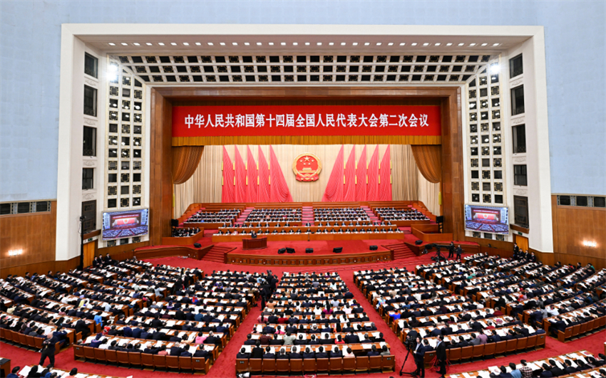Zhao Leji, presidente do Comitê Permanente da APN, entregou o relatório na segunda reuni?o plenária da segunda sess?o da 14a APN.