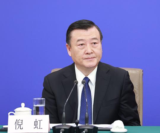 O Ministro da Habita??o e Desenvolvimento Urbano-Rural da China, Ni Hong, fala em uma conferência de imprensa sobre os meios de subsistência da popula??o para a segunda sess?o da 14a Assembleia Popular Nacional em Beijing, capital da China, em 9 de mar?o de 2024. (Foto: Feng Yongbin/China Daily)