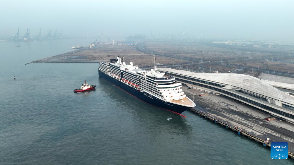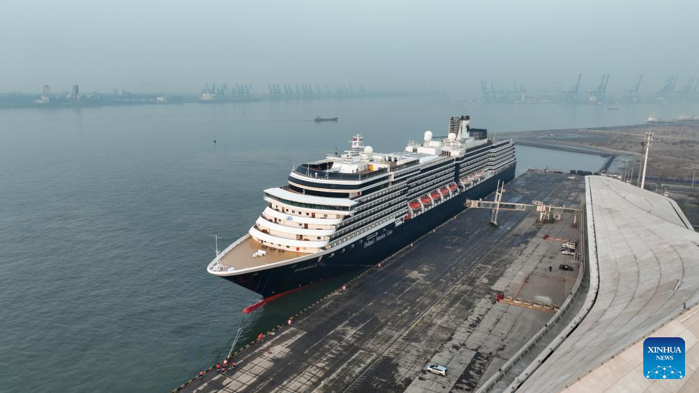 O navio de cruzeiro Zuiderdam, operado pela Holland America Line, atracou no Porto Internacional de Cruzeiros de Tianjin, no norte da China, na manh? de segunda-feira, com mais de 1.100 turistas de 30 países e regi?es a bordo.