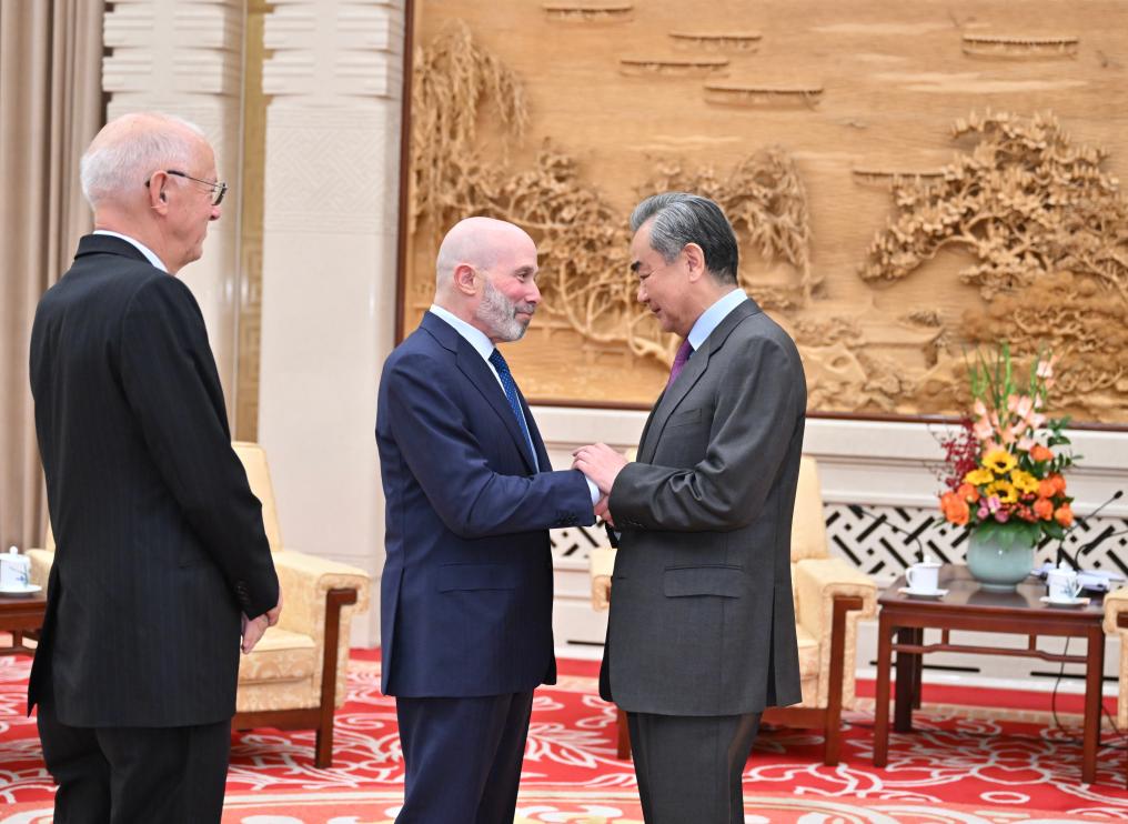 O ministro das Rela??es Exteriores da China, Wang Yi, reuniu-se com o presidente do Comitê Nacional de Rela??es EUA-China (NCUSCR, sigla em inglês), Evan Greenberg, e com o diretor do NCUSCR, Stephen Orlins, em Beijing, na ter?a-feira.