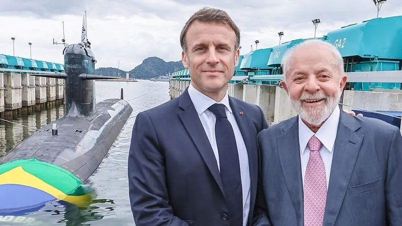 O presidente do Brasil, Luiz Inácio Lula da Silva, e o presidente francês, Emmanuel Macron, participaram na quarta-feira da cerim?nia de batismo e lan?amento ao mar do submarino Tonelero (S42), no porto de Itaguaí, no litoral do Rio de Janeiro (sudeste).