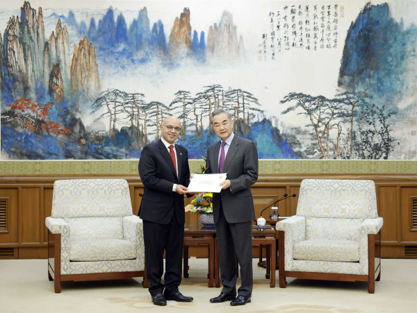 Wang, também membro do Bir? Político do Comitê Central do Partido Comunista da China, deu boas-vindas a Fahmy em seu novo cargo na China.