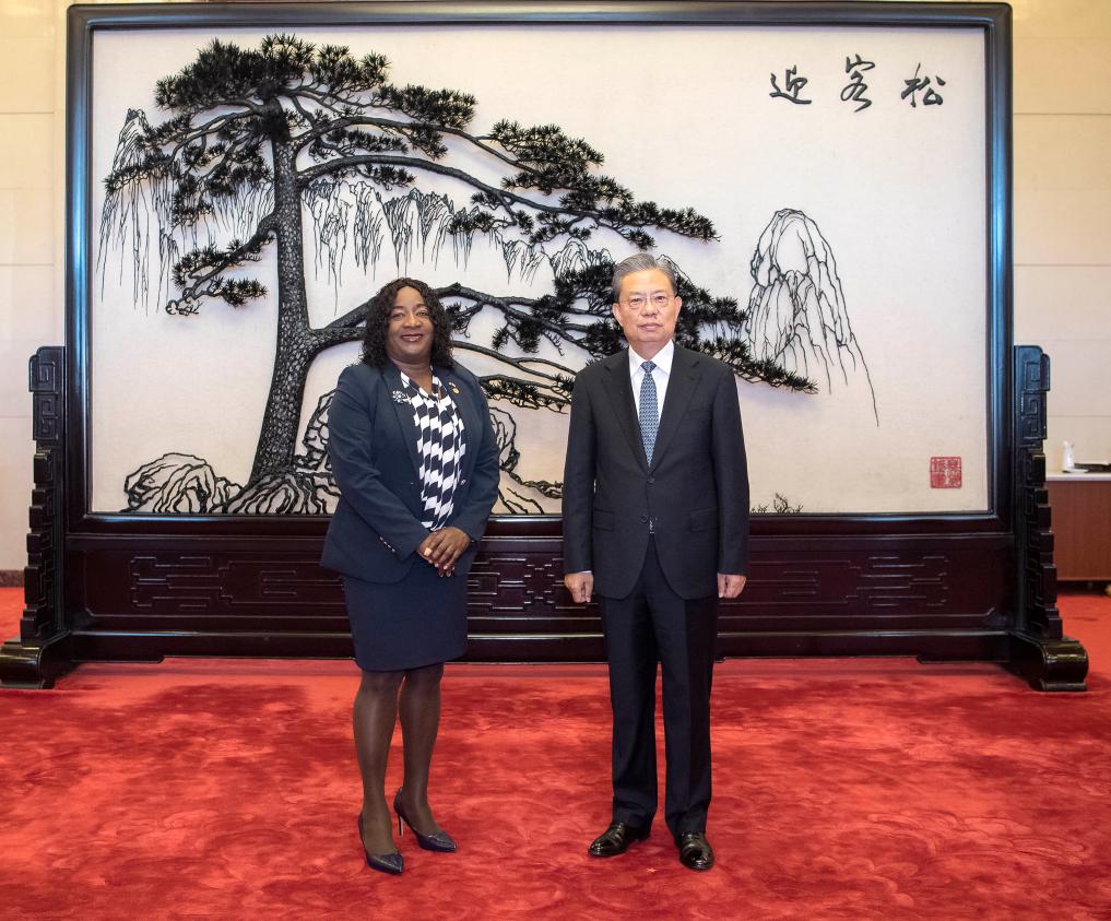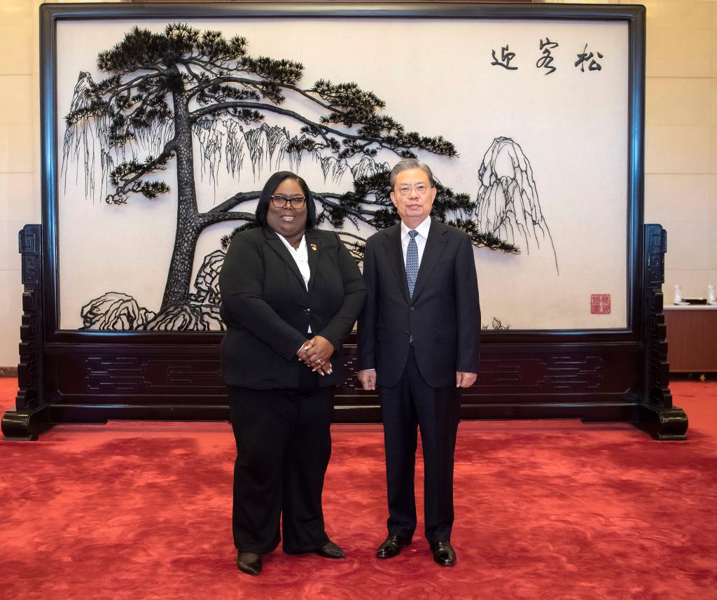 Zhao Leji, o mais alto legislador da China, conversou com a presidente da Camara de Representantes das Bahamas, Patricia Deveaux, e com a presidente do Senado do país, Julie LaShell Adderley, em Beijing, nesta ter?a-feira.
