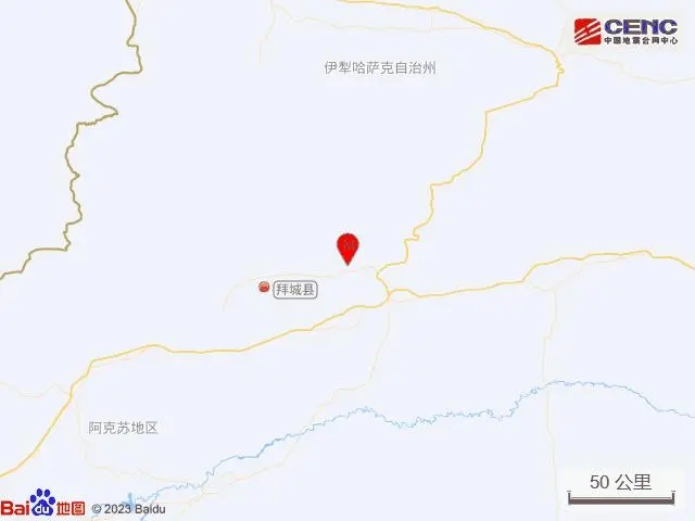 Um terremoto de magnitude 5,6 sacudiu o distrito de Baicheng, na Regi?o Aut?noma Uigur de Xinjiang, no noroeste da China, às 22h56 de quarta-feira (horário de Beijing), de acordo com o Centro de Redes Sísmicas da China (CENC, em inglês).