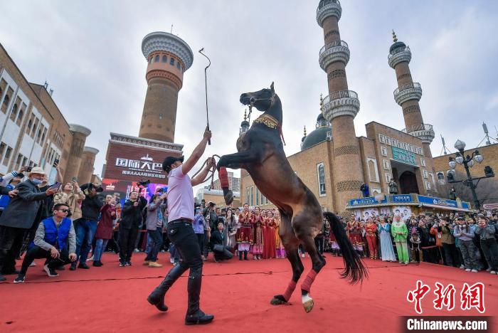 Os "cavalos de ferghana" fizeram uma estreia deslumbrante num evento no Grande Bazar Internacional de Xinjiang em Urumqi, capital da na Regi?o Aut?noma Uigur de Xinjiang, na quinta-feira (11), interagindo com os visitantes e atraindo uma multid?o de moradores e turistas.