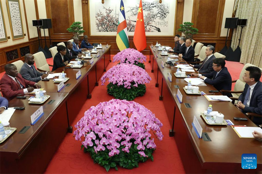 O ministro das Rela??es Exteriores da China, Wang Yi, conversou com a ministra das Rela??es Exteriores da República Centro-Africana, Sylvie Baipo-Temon, em Beijing, na segunda-feira, e os dois lados se comprometeram a intensificar a coopera??o em vários campos.