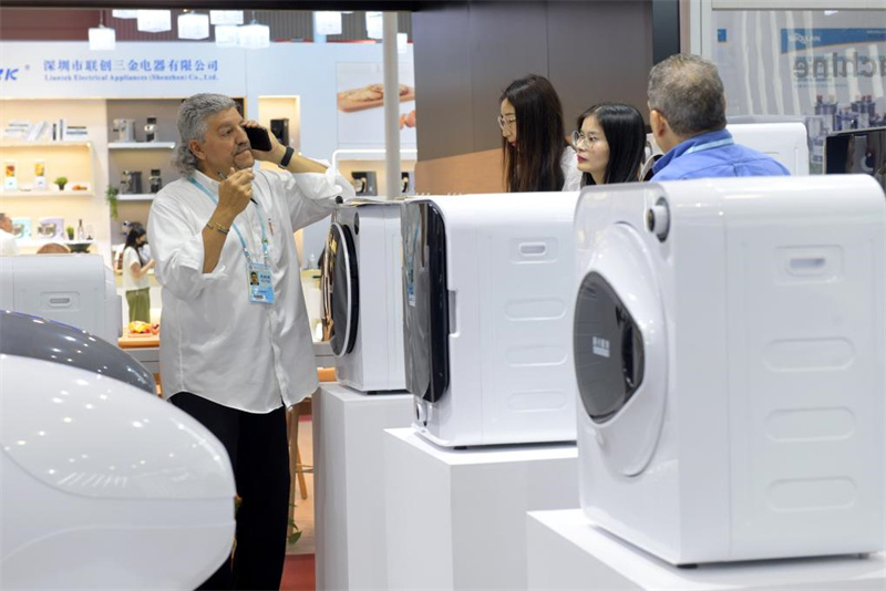Um comprador aprende sobre minisecadores na 135a sess?o da Feira de Importa??o e Exporta??o da China, também conhecida como Feira de Cant?o, em Guangzhou, província de Guangdong, sul da China, em 16 de abril de 2024. A 135a sess?o da Feira de Cant?o foi inaugurada na segunda-feira em Guangzhou. A zona de produtos inteligentes da feira atraiu cerca de 200 expositores e inúmeros visitantes (Foto: Lu Hanxin/Xinhua).