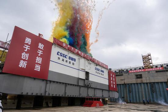 Chen Gang, gerente geral da construtora do navio China State Shipbuilding Corporation (CSSC) Shanghai Waigaoqiao Shipbuilding Co Ltd, classificou a cerim?nia como um marco no desenvolvimento da indústria de cruzeiros da China.