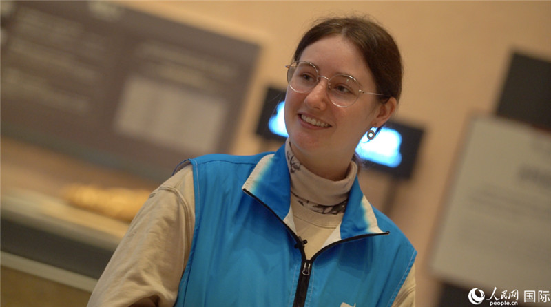 Emma Chen fala sobre as relíquias culturais do museu a especialistas estrangeiros do Diário do Povo Online. Foto: Yuan Meng