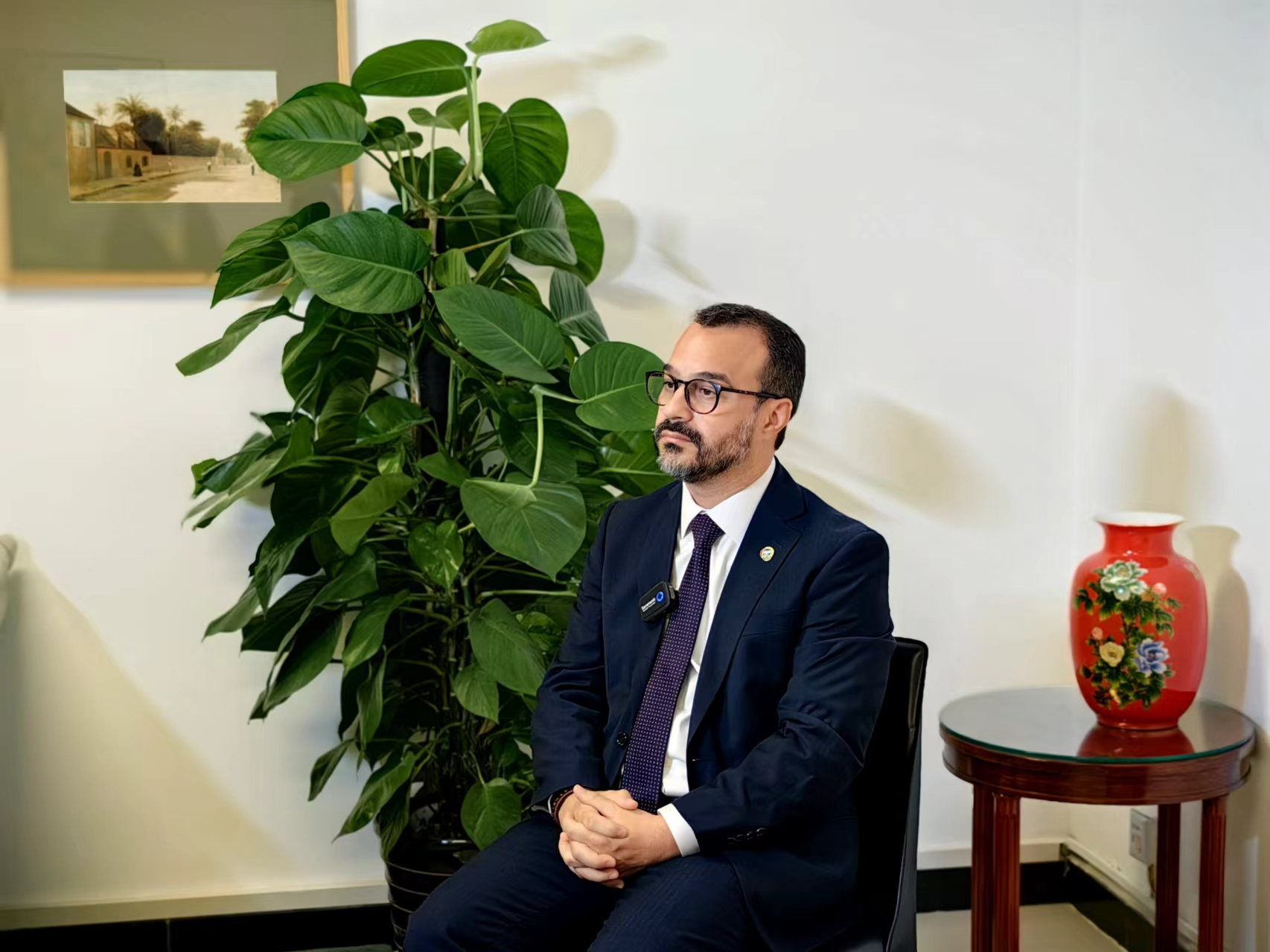 O secretário executivo adjunto do Ministério da Cultura do Brasil, Cassius Antonio da Rosa, concede uma entrevista ao Diário do Povo Online, em Beijing, em 22 de abril. (Foto: Fu Yuanyuan/Diário do Povo Online)