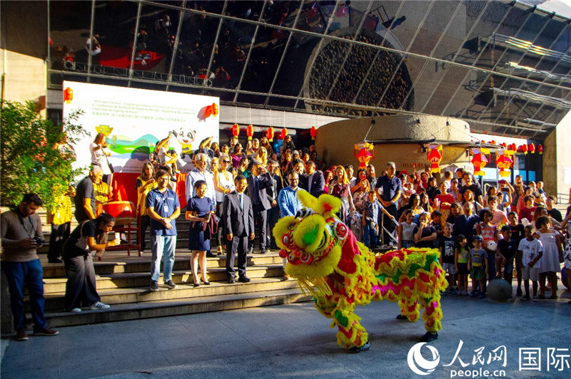 Brasileiros assistem a uma apresenta??o de dan?a do le?o em frente ao Planetário do Rio. Foto: cortesia do Departamento Provincial de Cultura e Turismo de Sichuan.
