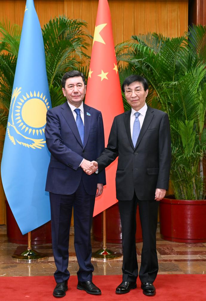 Wang Huning, mais alto conselheiro político da China, reuniu-se nesta quarta-feira com Yerlan Koshanov, presidente da Camara Baixa do Parlamento do Cazaquist?o, em Beijing.
