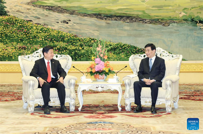 Wang Huning, presidente do Comitê Nacional da Conferência Consultiva Política do Povo Chinês, reuniu-se no sábado com uma delega??o visitante do Partido Kuomintang Chinês (KMT), liderada por Fu Kun-chi.