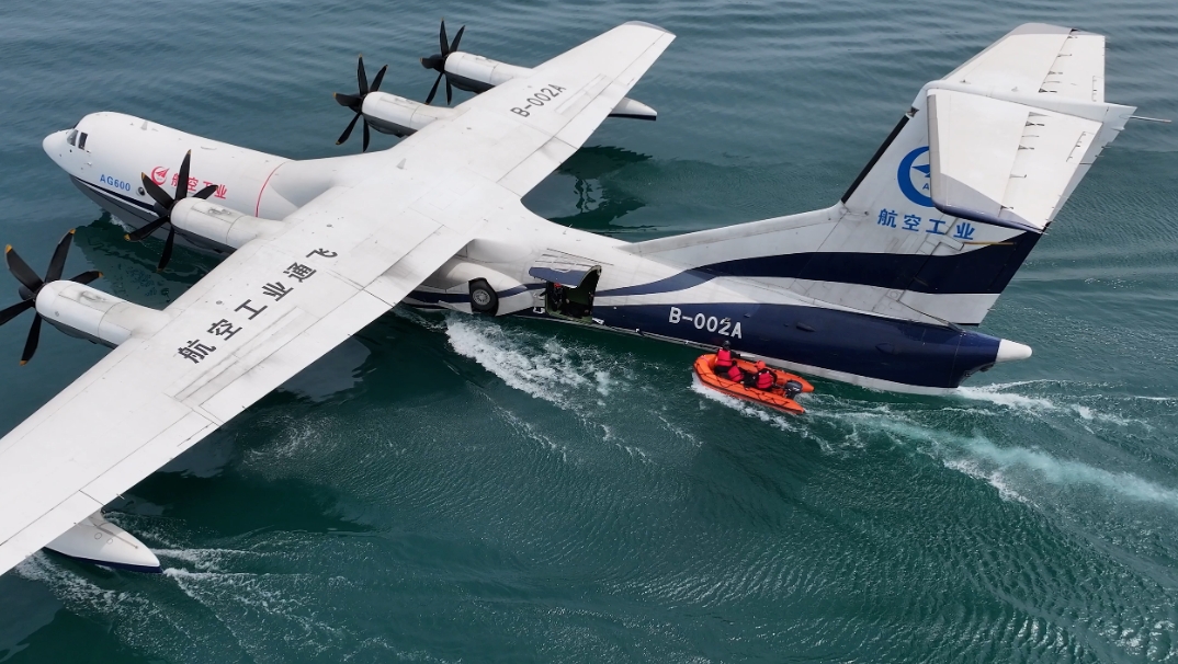 A aeronave anfíbia de grande porte AG600 desenvolvida de forma independente pela China concluiu a verifica??o inicial de suas capacidades de resgate aquático, de acordo com a Aviation Industry Corporation of China (AVIC).