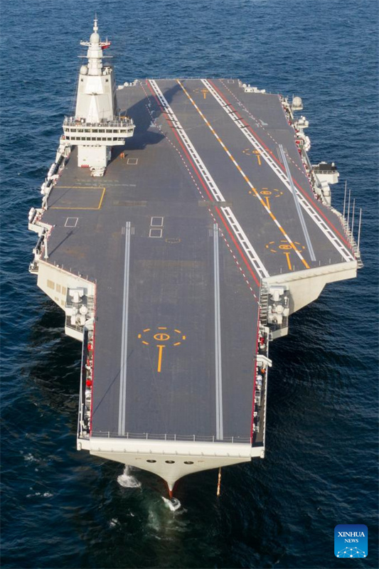 Terceiro porta-avi?es da China, o Fujian, durante seus primeiros testes no mar. (Foto de Ding Ziyu/Xinhua)