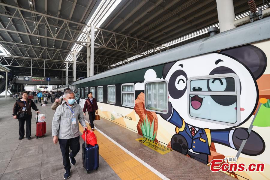 O trem, decorado com imagens, pinturas e mascotes de pandas gigantes e denominado "Trem Panda", que opera ao longo das cidades de Guiyang e Xishuangbanna, no sudoeste da China, e de Vientiane, Vang Vieng e Luang Prabang, no Laos, partiu de Guiyang na quarta-feira (8).